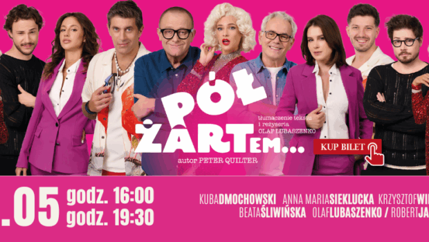 ♦ 23 maja 2026 (sobota), godz. 16.00 oraz 19.30 ♦ „Pół żartem…” – komedia, której nie da się zapomnieć! Wyobraź sobie upalny weekend na wsi: stary, lekko zarośnięty...